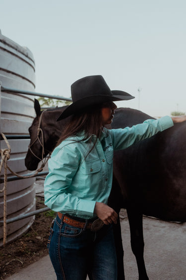 Women's Tamworth Half Button Workshirt - Turquoise